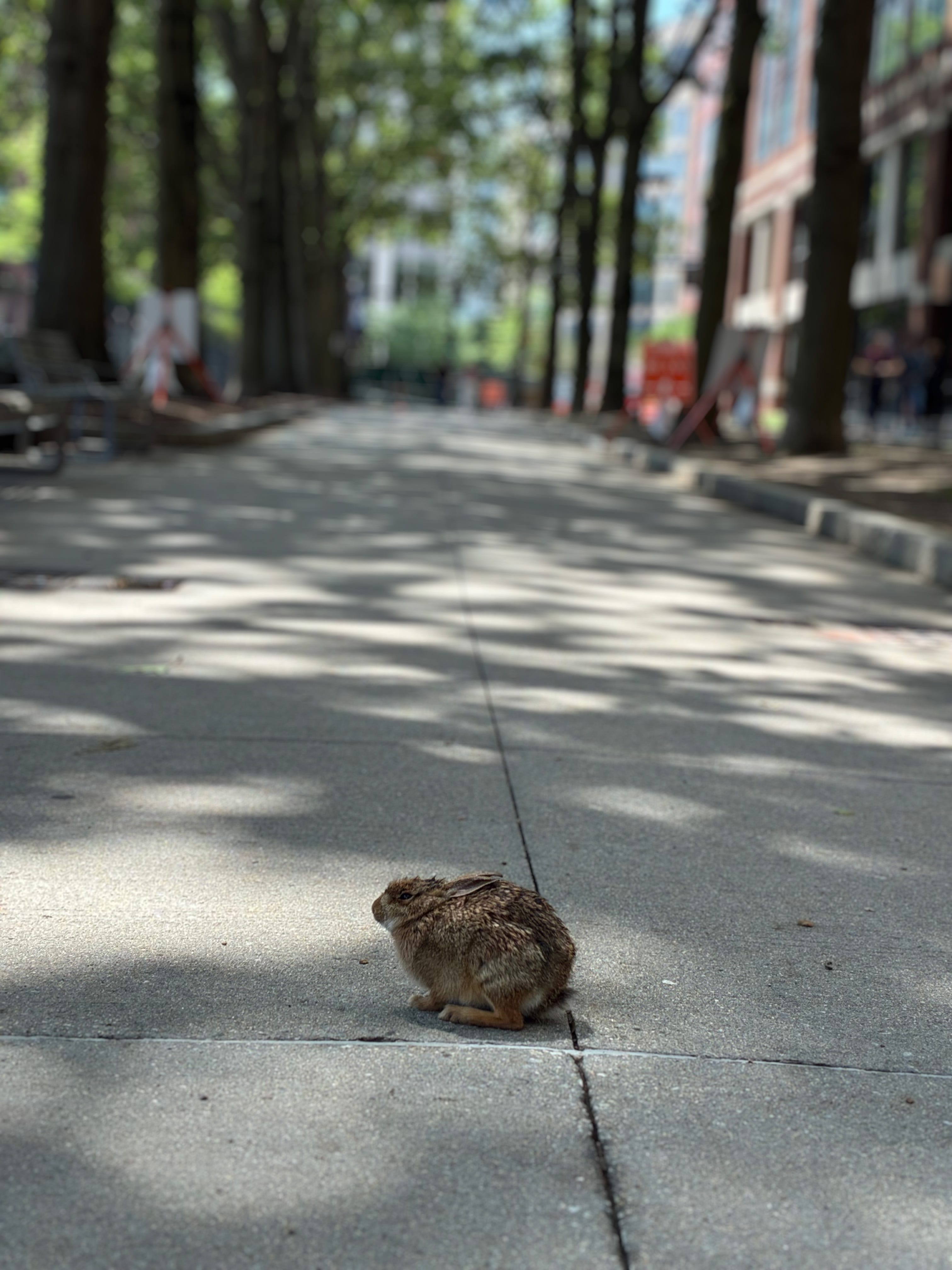 On a gorgeous day in Kendall Square last week I took a walk to get lunch. It was 70 degrees—25 degrees cooler than two days prior—so when I happened upon this balled-up bunny, I wondered if it was confused. But it didn’t look confused. It looked anxious, scared, even as it was leaving itself recklessly exposed. It squatted there stock-still as if carved out of wood as people rushed by. No one else seemed to notice it so for a split second, I wondered if I was imagining it, manifesting it from my own malaise. In case anyone else is feeling it too, I thought I’d share some things I’ve found uplifting recently.